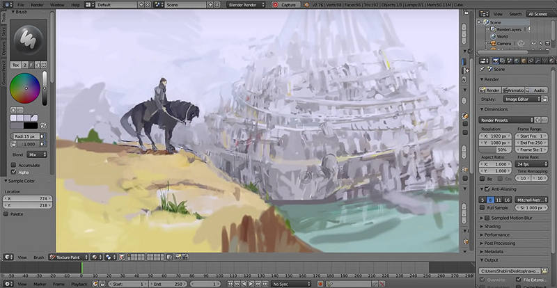 Two panorama painting tests created with Blender and Max have surfaced recently. It’s a simple setup but fun to watch: Blender video by Mikhail Shablin, 3DS Max video by Marcelo Souza (inspired by Mikhail’s video).