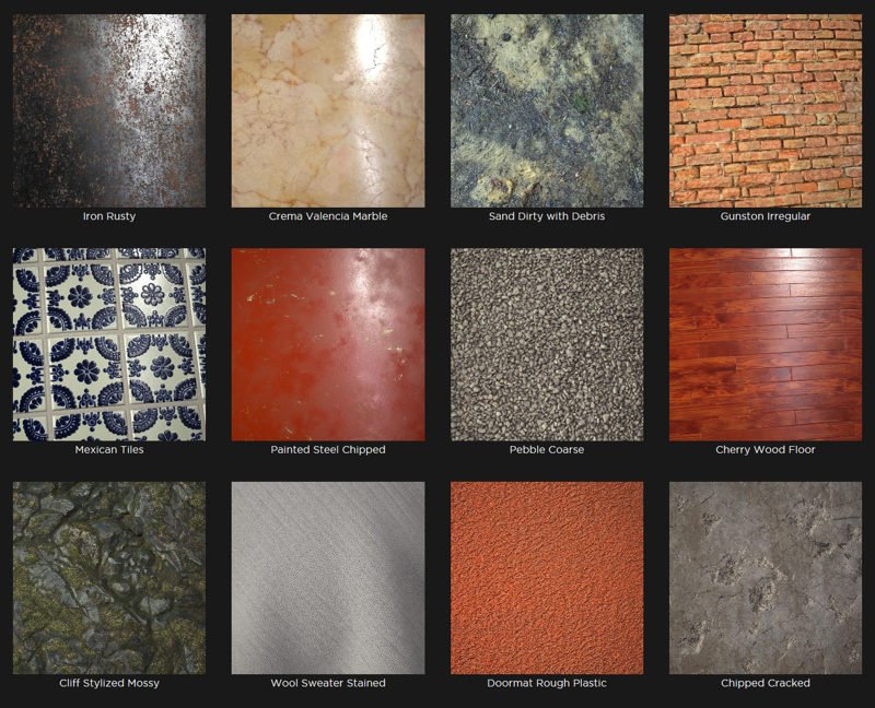 Substance Source is a library of physically-based materials that provides procedural Substance materials, hand-painted materials and 100% physically-based scans. The library will grow continuously with regular additions of new assets and the addition of new parameters and options to existing materials.