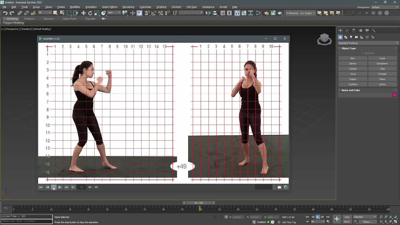 AnimRef allows animators to load and play image sequences directly within the 3ds Max interface. It includes a simplified interface with adjustable parameters such as time range selection, time shift, and opacity settings. The time slider remains synchronized with 3ds Max’s timeline, allowing for frame-accurate playback.