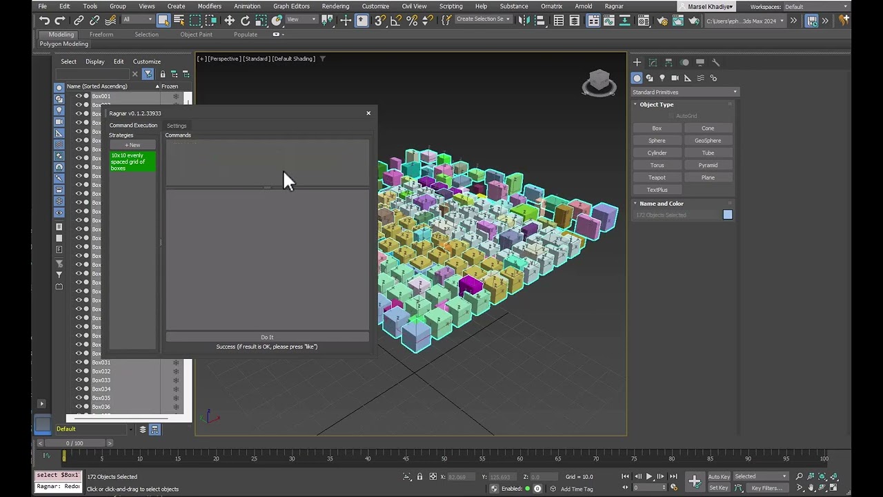 The AI has been trained on a 3ds Max knowledgebase so once connected to Ephere’s server with a valid user key, Ragner is able to to operate 3ds Max simply by telling it what to do. For example, in the example video above the presenter is able to quickly generate a grid of boxes, with the ability to specify dimensions and spacing. The AI remembers the context of commands, building a history that informs subsequent commands, allowing for complex sequences of actions to be performed.