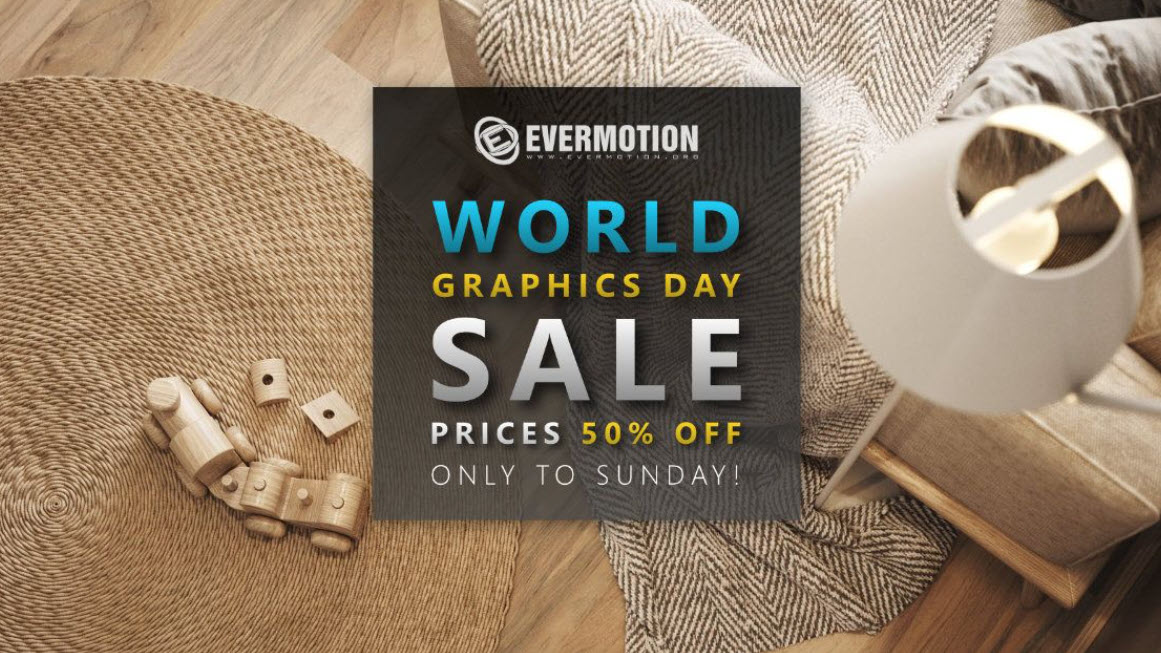 Evermotion is offering 50% off nearly all of their products for world graphics day. The sale runs until Sunday 23:00 GMT+1. Find out more on the Evermotion website.