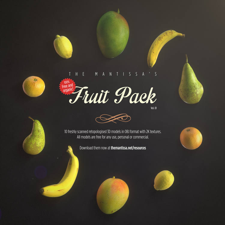 Belgium-based artist Midge Sinnaeve is once again generously sharing free scanned 3D models he created, this time a set of 10 freshly squeezed fruit models in OBJ format with 2K textures. The models have been retopologized. Watch a video and find the download link on The Mantissa.