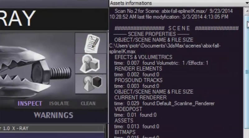 A commercial script that scans an entire scene (or given objects) to find and solve most common technical problems causing low 3DS max performance. It provides a number of modules to clean meshes, convert materials, bitmaps, find missing assets and more useful tools for everyday work. More on MaxMechanic’s website.
