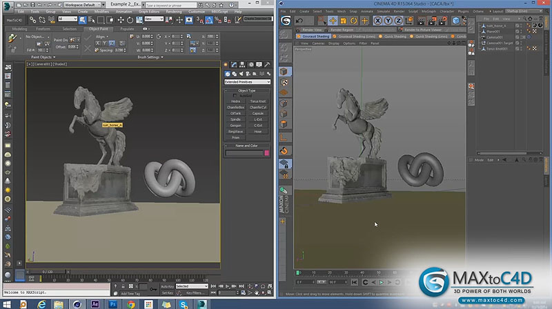 MaxToC4D is a new plugin for transferring a 3DS Max scene to Cinema 4D with just 2 clicks, solving common import/export problems and optimizing the Max to C4D workflow. The software allows to transfer V-Ray materials (they are converted to C4D standard materials) and some extra info such as Output Resolution, Environment Color/Image/Type, etc. MaxToC4D is currently under development and users are welcome to register to take part in beta testing. More on MaxToC4D’s site.