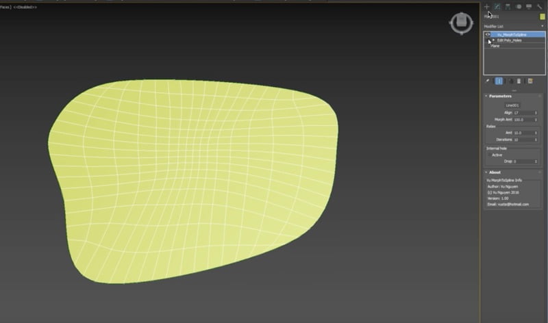 A useful MCG modifier by Vu Nguyen that allows you to morph geometry to fit inside a closed spline, with controls for relaxing the result and adding internal holes. More on Scriptspot.