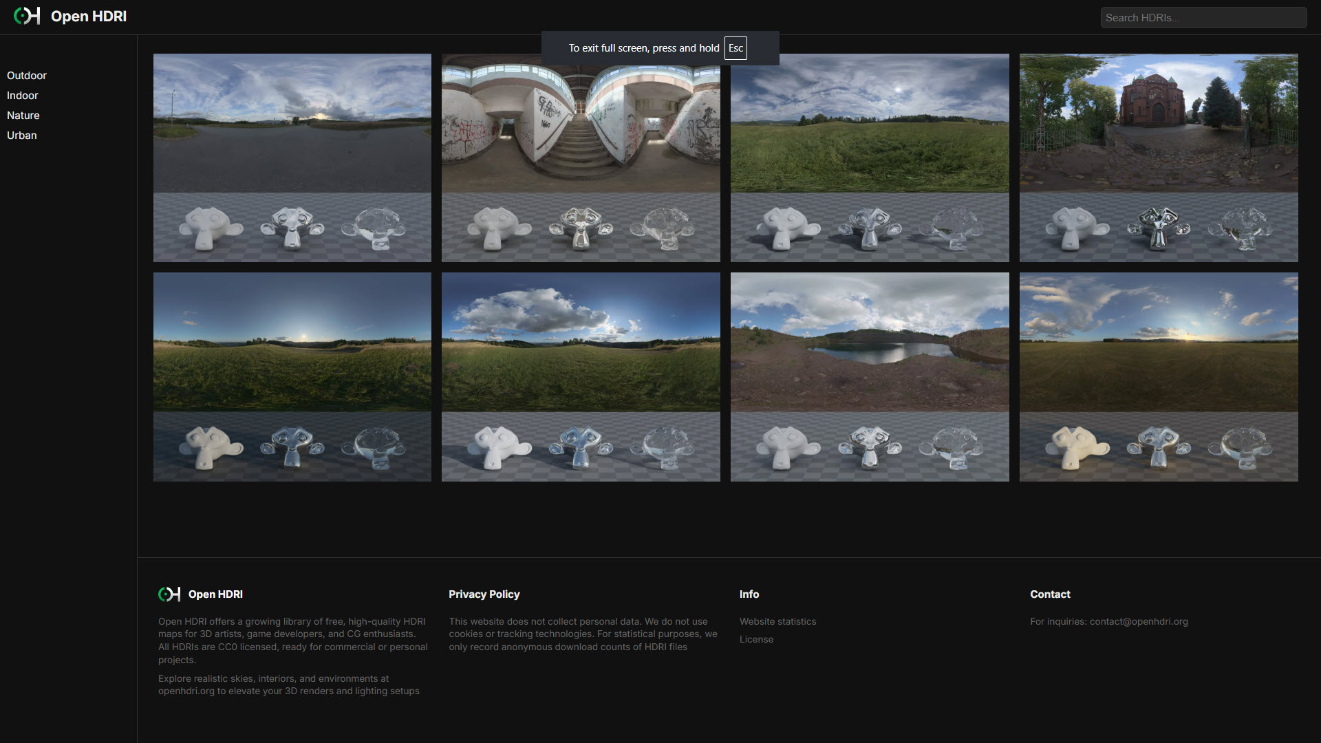 OpenHDRI has launched a new website, offering free high-dynamic-range images for use in lighting and rendering. The site currently hosts just seven HDRIs, but more new environments are promised as the library expands.