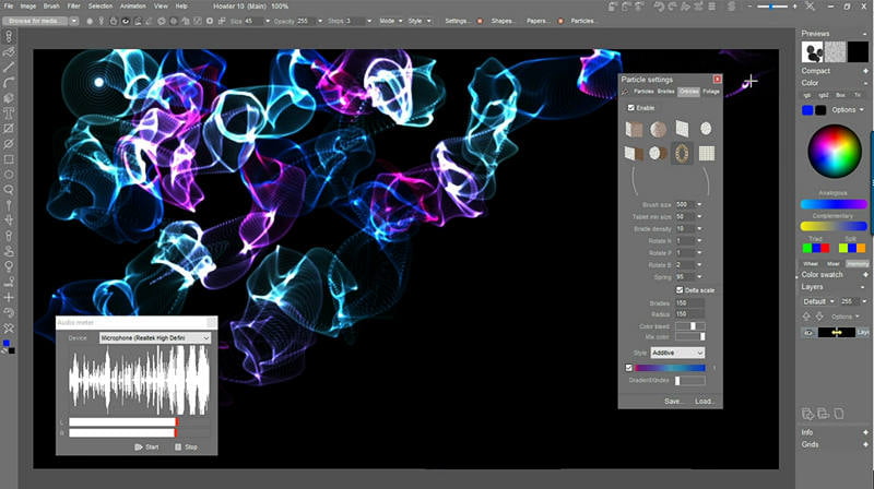 New features in the latest version of the painting and VFX software include: block interpolation (morph between a block of frames to fix missing or bad frames in a video), new color picker with integrated color themes, new and updated particle tools, orbicles brush responds to audio input, etc. More on Howler’s website.