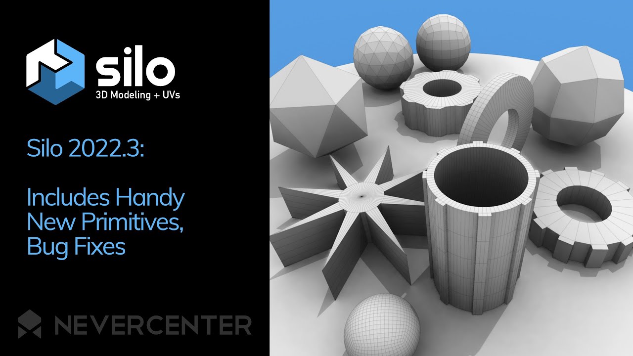 Nevercenter has announced the release of Silo 2022.3, the latest version of its lightweight poly modeller. Features include several new primitives including gear, wheel, quad sphere, and tri sphere. Find out more on the Nevercenter website.