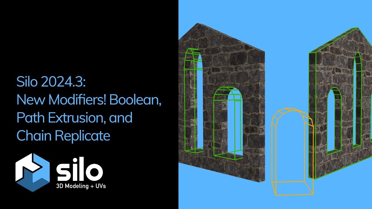 Nevercenter has released Silo 2024.3. The update introduces new modifiers that add new non-destructive workflows by using external target shapes. The Boolean modifier allows users to easily combine or subtract complex shapes, while the Chain Replicate modifier generates repeating patterns, such as stairs or chains, using source and target shapes. In addition, the Path Extrusion modifier enables the lofting of shapes along a path, which can be modified at any time.