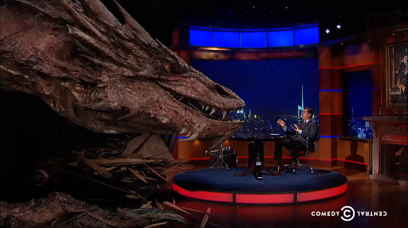 Smaug the dragon discusses his role in The Hobbit films, in an interview with US comedian Stephen Colbert. Watch it on The Colbert Report’s website.