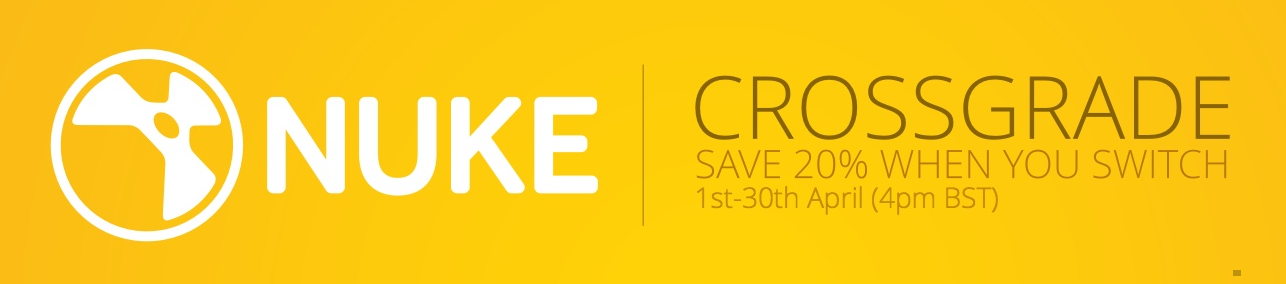 Until April 30, users crossgrading from packages such as Adobe After Effects, Autodesk Flame and Smoke, Avid DS, or Blackmagic Fusion are elegible for a 20% discount on NUKE, NUKE X, and NUKE STUDIO. For more information, please visit The Foundry’s website.