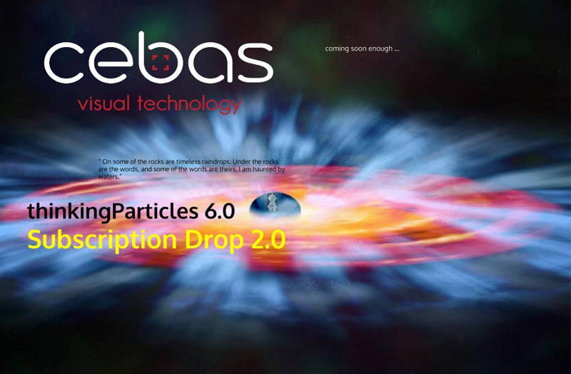 Cebas has posted a teaser announcing the upcoming release of the second update to v6 of its rule-based particle system for procedural creation of visual effects. Watch the teaser on YouTube.